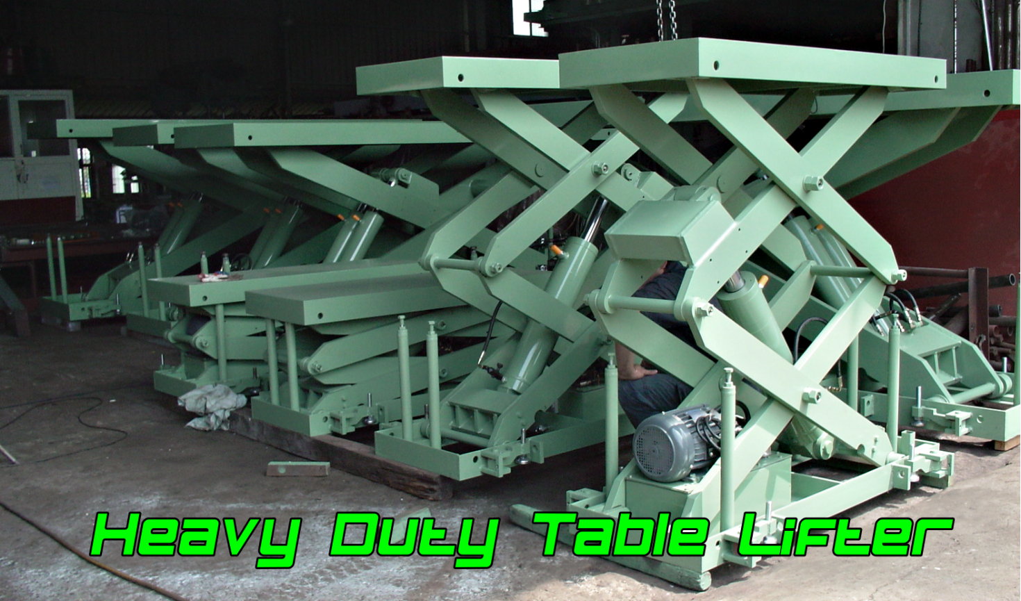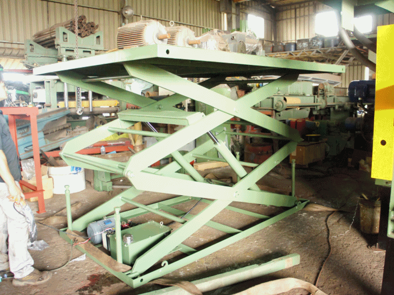 本公司之油壓機械設備-油壓升降台(升降平台),其主結構由型鋼焊接而成,上下檯面與高強度的支撐臂結合成一體的鋼結構體,其強度、負載能力皆能有效的承受起升降等操作的負荷。